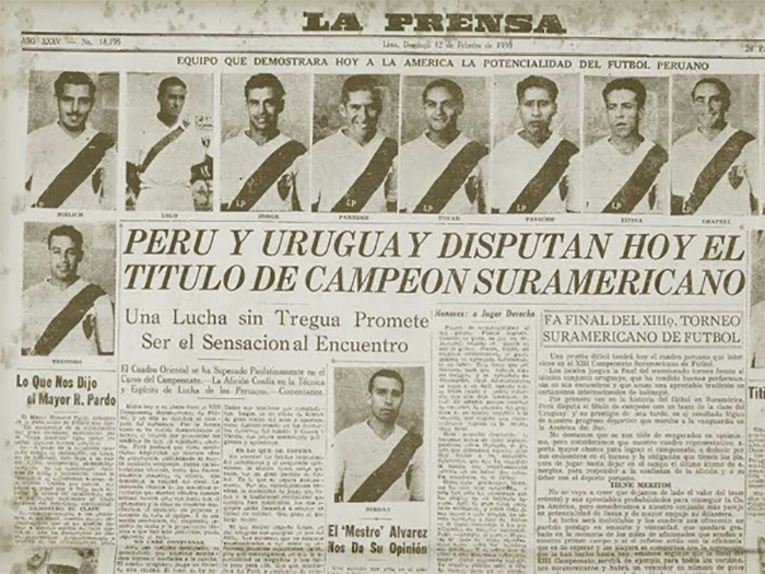 C’est fort de cette dynamique positive que le Pérou se prépare à son grand défi de 1939, son Campeonato Sudamericano qui se déroule à l’Estadio Nacional de Lima. Pour cette 15e édition, l’Argentine et le Brésil sont absents mais un petit nouveau fait son arrivée, l’Equateur. La jeune Tri repartira de Lima la valise chargée de buts, 18 encaissés en quatre matchs. Emmené par le duo “Lolo” Fernández – Jorge Alcade, le Pérou débute par un 5-2 face à l’Equateur, avant que l’ultra-offensif 2-3-5 de Greenwell ne vienne à bout du grand rival chilien (victoire 3-1, doublé de Fernández, but d’Alcade) puis du Paraguay (victoire 3-0, le duo offensif nous offrant un copier – coller), match au cours duquel la sélection péruvienne confirme sa montée en puissance en affinant davantage son jeu collectif. De quoi engranger de la confiance en vue du dernier match, véritable finale pour le titre, opposant le Pérou à l’ogre uruguayen dirigé par la légende Alberto Suppici, l’homme du premier titre mondial, et qui compte dans ses rangs des joueurs comme Roberto Porta, neveu de l’idole du Nacional Abdón Porte (son histoire est à lire ici : Abdón Porte, le sang du Nacional).