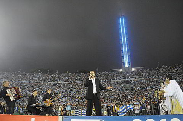 Quelques jours avant le match retour, au Centenario, l'AUF réfléchit à rendre le match spécial, à faire monter un peu plus la pression dans le stade. Ils contactent Jaime Roos, auteur, compositeur, une star en Uruguay, et lui demandent conseil. Ce dernier n'hésite pas : ce sera murga, le style du carnaval uruguayen. N'étant pas un interprète pour ce type de chanson, un hymne, il contacte immédiatement Freddy Zurdo Bessio, chanteur de la murga Agarrate Catalina, avec lequel il a travaillé dans les années quatre-vingt-dix. Freddy accepte par téléphone, raccroche, et se rend compte immédiatement de l'immense pression qui vient de tomber sur ses épaules. Soixante-dix mille personnes, le stade plein, l'attendent. Le dictionnaire Larousse traduit Murga par « troupe de mauvais musiciens ambulants ». C'est ignorer l'importance qu'a ce style de musique en Uruguay, que ce soit au carnaval ou dans la musique uruguayenne en général. Diego Lugano est prévenu que l'hymne sera joué par Bessio, il prévient ses collègues. Le jour du match, Bessio est à deux doigts de ne pas réussir à sortir sur le terrain, écrasé par l'angoisse. Il fait finalement le tour du stade, croise sa femme, sa famille, Jaime Roos, l'Uruguay, et s'installe sur une petite tribune installée en bas de la tribune Olimpica, en bas de la tour des Hommages.